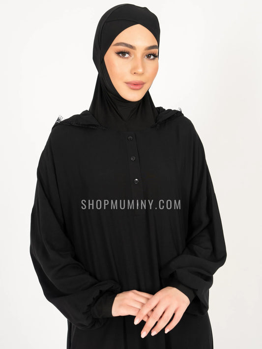 All the prayer dresses in our MUMINY HOODS collection feature an innovative design, with attached hoodies. The hood conceals your under-cap and adds a touch of elegance