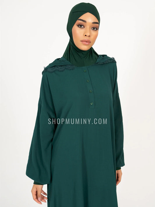 Hooded One-Piece Prayer Dress: Emerald Dream