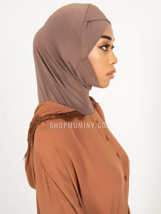 One-Piece Instant Jersey Hijab: Mocha Brown