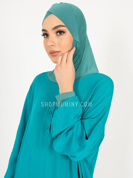 One-Piece Prayer Dress With Scarf: Teal Twilight